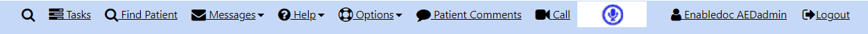 At the top of every page are the following options: Main Menu, Patient Search, Find Patient, Tasks, Messaging, Direct Messaging, Support, Lice Support, Knowledge Base, Patient Portal, Coordinator, HIstory, Eligibility, Patient Comments, Calls/Video, and Speech Recognition.